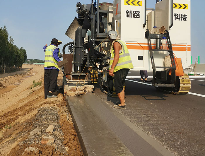NC1300混凝土滑模攤鋪機在山西武鄉(xiāng)施工的排水溝