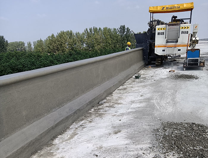 河南漯河橋梁防撞護(hù)欄滑模施工-NC1300滑模攤鋪機案例